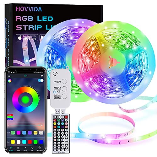 15M Tiras LED RGB 5050 Música, HOVVIDA Bluetooth Luces de Tiras LED 12V para Habitación, Controladas por APP, IR Control Remoto y Controlador, 16 Milliones de Colores, 28 Estilos, Modo de Horario
