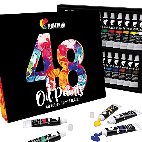 48 Tubos de Pinturas al Oleo Zenacolor – Set de 48 x 12 mL – Pintura para Profesionales – Caja de 48 Colores Diferentes – Ideal para Adultos