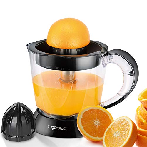 Aigostar Thomas 30RGX – Exprimidor Eléctrico, 40W, 1000 ml, Cantidad de Pulpa Ajustable,Apto para Lavavajillas, 2 Conos Desmontables, Exprimidor Naranjas Negro