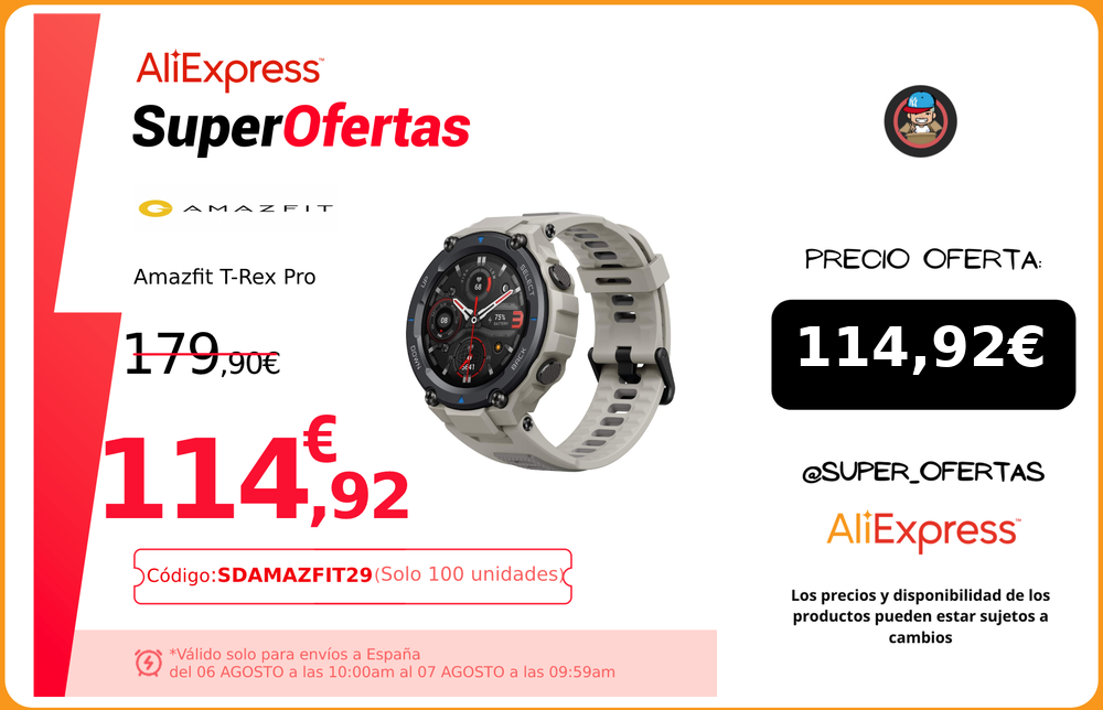 Amazfit T Rex Pro Smartwatch Fitness Monitor de Sueño y Ritmo cardiaco 10 ATM GPS Reloj Inteligente Deportativo con más de 100 M,Consigue increíbles descuentos en artículos de vendedores chinos y de todo el mundo. ¡Disfruta de envíos gratis, ofertas por tiempo limitado, devoluciones sencillas y protección al comprador!