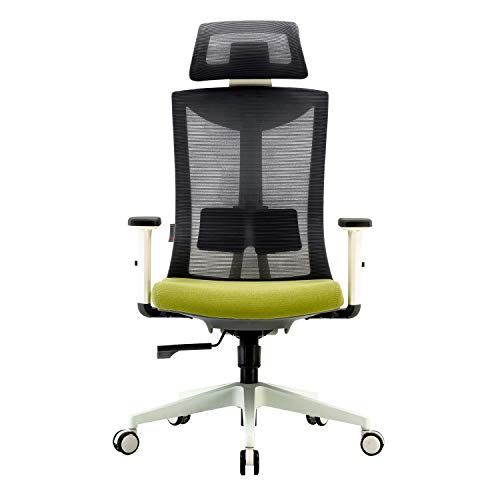 Amazon Brand – Umi Silla Oficina- Silla de Escritorio ergonómica y giratoria de Malla con Soporte Lumbar Regulable y reposabrazos de Poliuretano y Asiento Acolchado-Carga máxima de 150 kg(Verde)