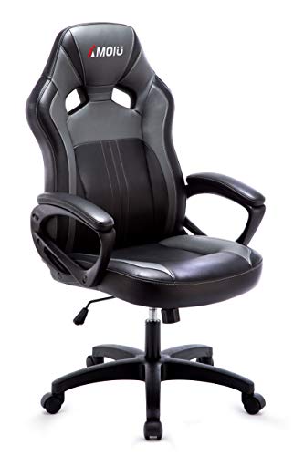 Amoiu Silla Gaming, Silla Gamer Ergonomica, Sillas Gaming PC de PU Reposacabezas Cómodo 360° Giratoria Altura Ajustable Mecanismo de Inclinación de Escritotio Oficina Gamer