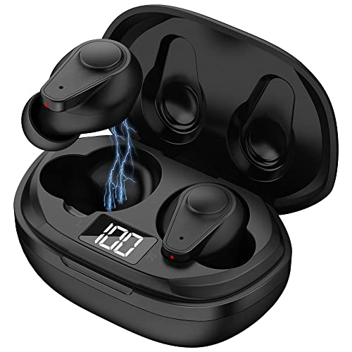 Auriculares Bluetooth IPX5 Impermeable Bluetooth 5.1 In-Ear Auriculare, Auriculares inalámbricos con Estuche de Carga y micrófono,Resistentes al Sudor, Aislamiento de Ruido, Graves Profundos, Negro