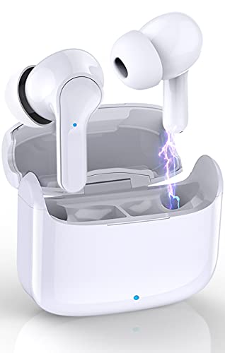 Auriculares Inalámbricos Bluetooth, Donerton Auriculares Bluetooth 5.0 con Estéreo Micrófono TWS Cascos In-Ear, IP7 Impermeable, con Caja de Carga Portátil, 8 Horas de reproducción Permanente, Blanco