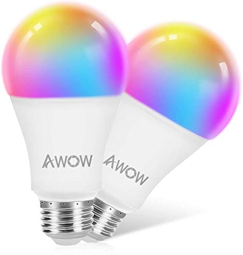 AWOW Bombilla LED Inteligente Wifi RGBW, A60 E27 9W 800LM Bombillas Inteligentes con Control de Voz, Cambio de Colores y Luminosidad, Compatible con Alexa, Google Home e IFTTT (Paquete de 2)