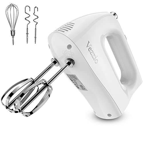Batidora de Mano Vezzio Batidor Eléctrico 400W Batidor Eléctrico de Cocina, Batidor Eléctrico 5 Velocidades con Gancho Para Masa Accesorio Batidor de Acero Inoxidable Para Hornear Pasteles, Blanco