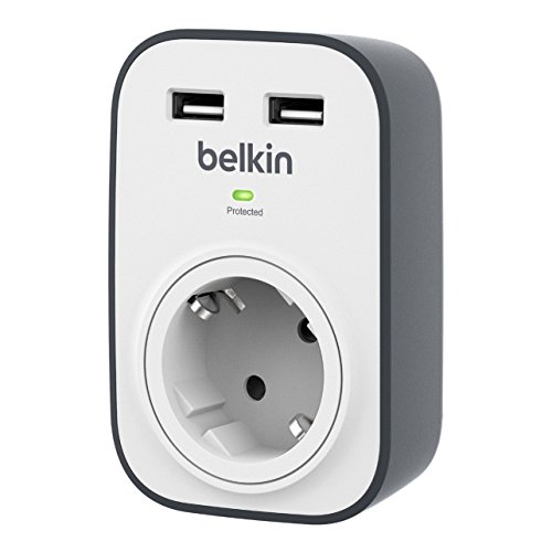 Belkin BSV103 SurgeCube – Protección contra sobretensiones con un zócalo y 2 puertos de carga USB con un total de 2.4 A, blanco