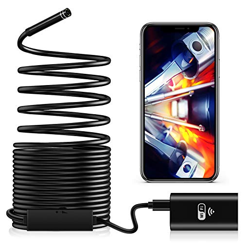 Cámara Endoscópica WiFi, Cámara de Inspección de 2,0 Megapíxeles HD con Luz LED Impermeable Endoscopio Cámara Borescope Rígido Cable Serpiente para Android iOS iPhone Tablet PC Smartphone – 10 Metros