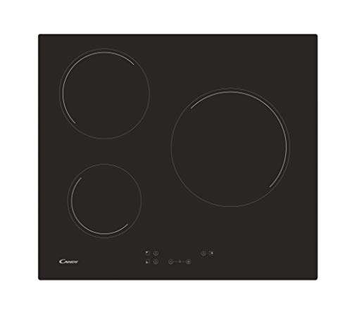 Candy CH63CC, Placa Vitrocerámica, 3 Zonas, 60CM, 10 Niveles de Potencia, 5,5KW, Mandos Centrales, Bloqueo de Seguridad, Indicador de Calor, Alerta Sobrecalentamiento y Derrames, Negro