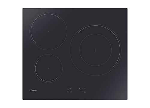 Candy CI633C/E1, Placa Inducción, 3 Zonas, 60CM, 9 Niveles de Potencia, 7,2KW, Mandos Centrales, Temporizador, Bloqueo de Seguridad, Indicador de Calor, Alerta Sobrecalentamiento y Derrames, Negro
