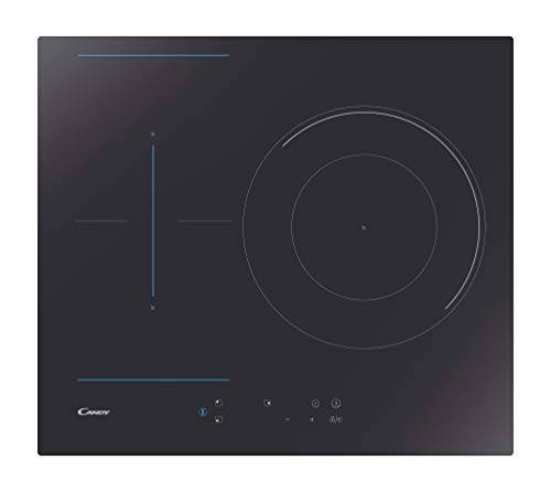 Candy CTP634B3/4U – Placa inducción, Zona flex y paellero de doble corona, 3 biseles, 9 niveles de potencia, Temporizador, Serigrafía azul, 7,1kw, Negro