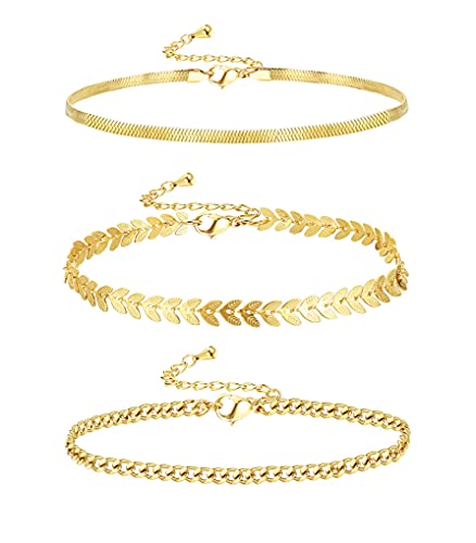 CASSIECA 3 Piezas Tobilleras Pulseras 14K Playa Hecha a Mano Ajustables Tobilleras Joyería del pie Regalos Brazalete de Tobillo para Mujeres niñas