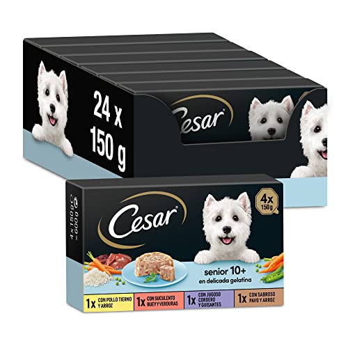 Cesar Comida Húmeda para Perros Senior, Selección Carnes Mixtas, Multipack (Pack de 6 x 4 Tarrinas x 150g)