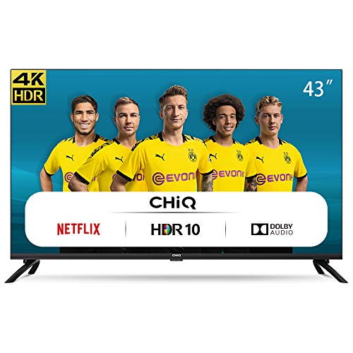 CHiQ Televisor Smart TV LED 43 Pulgadas, Resolución 4K UHD, HDR 10/HLG, WiFi, Bluetooth (Solo Auriculares y Altavoces), Netflix, Prime Video, Youtube, HDMI ARC, USB – U43H7L