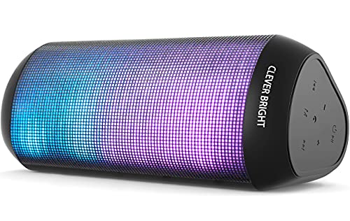 CLeverBright T900 Altavoz Portátil Bluetooth 5.0 con Luces de Ritmo de 7 Colores, Graves Profundos Estéreo TWS Sonido Envolvente de 360°, Micrófono Incorporado, AUX, para Exterior Viajes Fiesta Casa