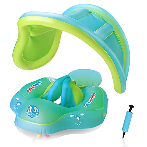 Coikes Flotador Bebés Inflable con Cubierta Solar Bebés Flotador de Natación Anillo Inflable Ajustable Bebés Flotadores con Bomba Natación Infantil Flotante Asiento para 6-36 Meses Bebé y Niños