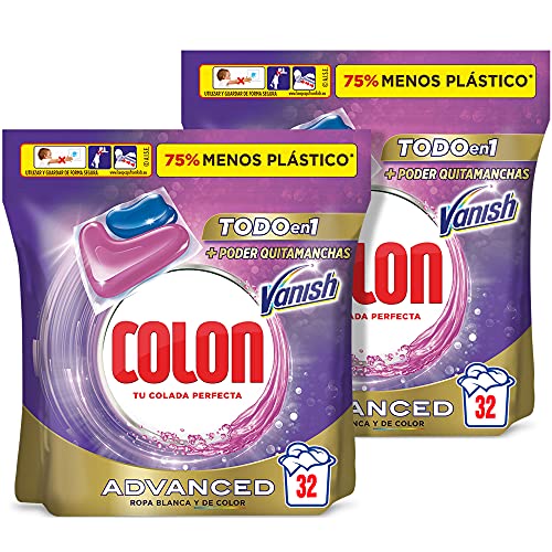 Colon Vanish Advanced Detergente para lavadora con quitamanchas, adecuado para ropa blanca y de color, Formato cápsulas – Pack de 2, total 64 dosis