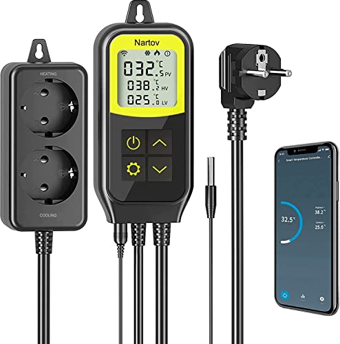 Controlador de Temperatura Refrigeración/Calefaccion Regulador 2500W WiFi Digital Termostato con Sonda para Pecera/Cría de Incubación/Fermentación, App Control Remoto, Amazon Alexa/Google Assistant