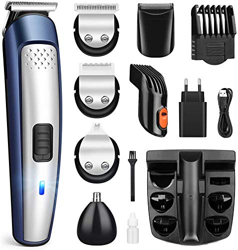 Cortapelos Electrónico Cortapelos Profesional Hombre Barbero,Cortapelos Nariz y Orejas,Maquina de pelar,Máquina de Afeitar, Recortadora Barba y PrecisiónImpermeable 8 en 1 Afeitar de Barba/Cara/Cuerpo