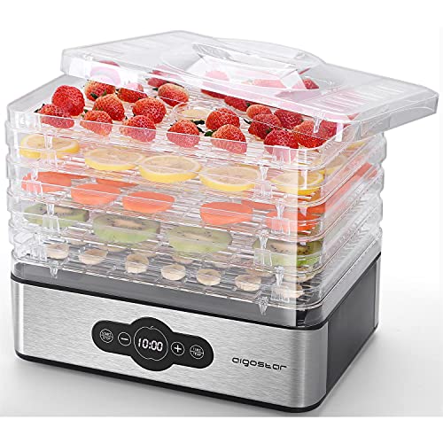 Deshidratador de Alimentos 240W Aigostar Crispy, Deshidratador con 5 Bandejas Altura Regulable, Pantalla LCD, Temporizador 99H y Temperatura Ajustable, Deshidratadora de Frutas y Verduras, Sin BPA