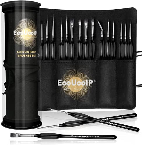 Detalles Juego de Pinceles de Pintura, EooUooIP 15 Piezas de Pinceles en Miniatura de Artista Profesional Pinceles de Pintura acrílica para Detalles Finos, Pintura artística, Acuarela, uñas (Negro)