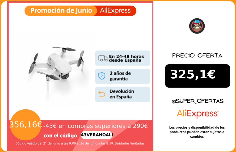 Dron DJI Mavic Mini Combo, cámara 2,7K, Estabilizador en tres ejes, Alcance transmisión HD 4km, Tiempo vuelo 30 min.,Consigue increíbles descuentos en artículos de vendedores chinos y de todo el mundo. ¡Disfruta de envíos gratis, ofertas por tiempo limitado, devoluciones sencillas y protección al comprador!