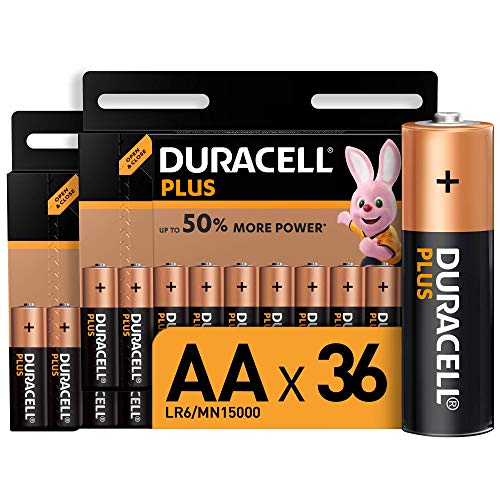 Duracell Plus AA, Pilas Alcalinas , paquete de 36, 1,5 Voltios LR06 MN1500