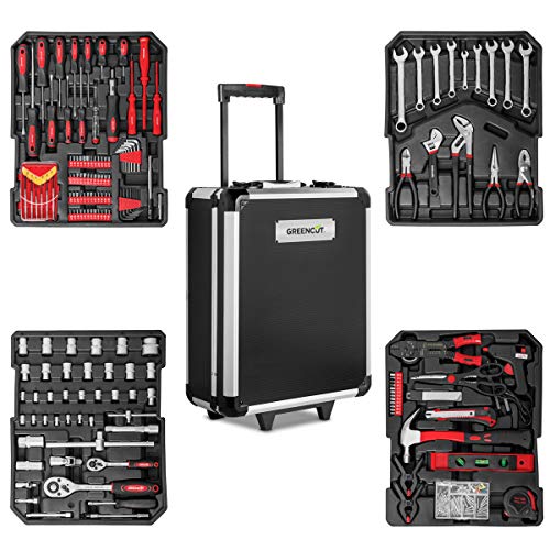 GREENCUT TOOLS819 – Set de herramientas con 819 piezas, Maleta trolley 2 ruedas y asa telescopica, Juego de Herramientas de reparación hogar Piezas Taller