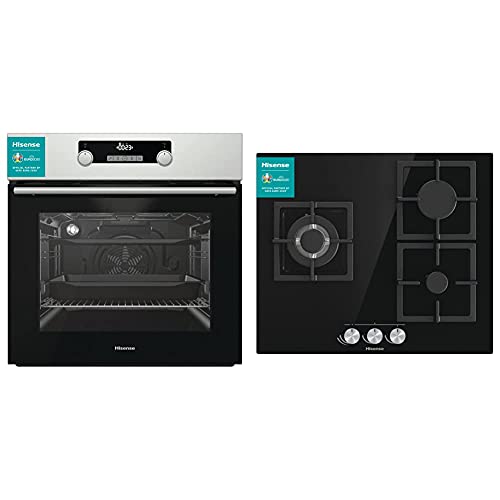 Hisense BSA5222AX Horno función vapor y Multifunción, Eficiente, capacidad 71 L + GG633B Placa de Gas Natural, 3 Zonas, 60 cm