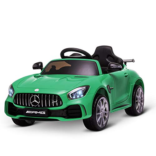 ✅✅LICENCIA DE MERCEDES: Este vehículo infantil eléctrico de gran realismo cuenta con la licencia oficial de Mercedes-AMG, en concreto de su modelo GTR. Funciona a una velocidad de 3 a 5 km/h. Los faros y luces posteriores, salpicadero y volante crean la experiencia realista. Es un buen regalo para niños a partir de 3 años (bajo la supervisión de un adulto)