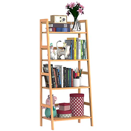 HOMCOM Estantería de Bambú 4 Niveles Estantería Escalera de Baño Librería Organizador Zapatero 48x30x119cm