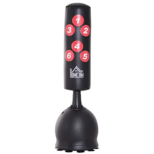 HOMCOM Saco de Boxeo de Pie 165 cm con Base Rellenable de Agua 22,5 kg o Arena 27,5 kg y Ventosas de Goma para Adultos y Niños 50x50x165 cm Negro