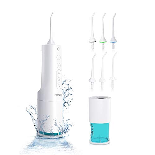 Homgeek Irrigador Bucal Portatil,Irrigador Dental con 380ML y 6 Boquillas,1800 Veces/Minuto de Pulso de Agua,Carga USB Irrigadores Bucales Portatil,Irrigadores Dentales Doméstico/de Viaje