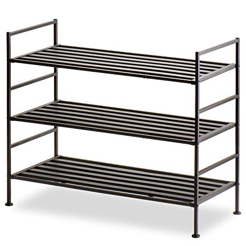 HOUSE DAY Estante de zapatos para armarios 3 niveles ajustable Organizador de zapatos DIY Estante de zapatos independiente 26 pulgadas de ancho Estante de zapatos de metal Estante