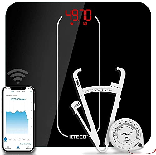 ILTECO Bascula de Baño Inteligente, Bascula de precision digital con Tecnologia Bluetooth conexión Android e iOS, Pantalla LCD, Tecnologia Handsfree | Color Negro