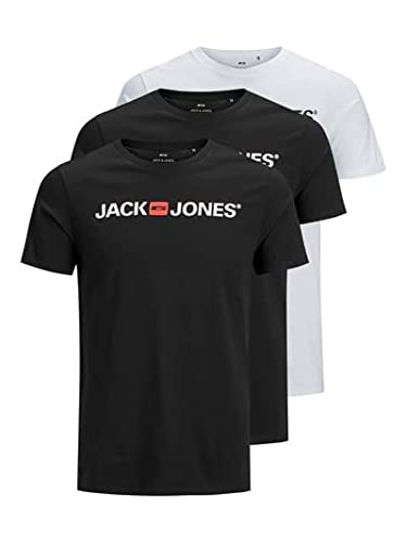 Jack & Jones JJECORP Logo tee SS Crew Neck 3PK MP Camiseta, White/Pack:1black 1navy Blazer 1 White, M para Hombre
