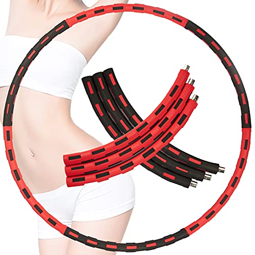 JeoPoom Hula[6 Nudos], Aro de Entrenamiento para Pérdida de Peso, Hula para Fitness, Tubo de Acero Inoxidable de Espuma de Capa, Peso Ajustable, para de Quemar Grasa, Adelgazar,Deportes(Negro+Rojo)