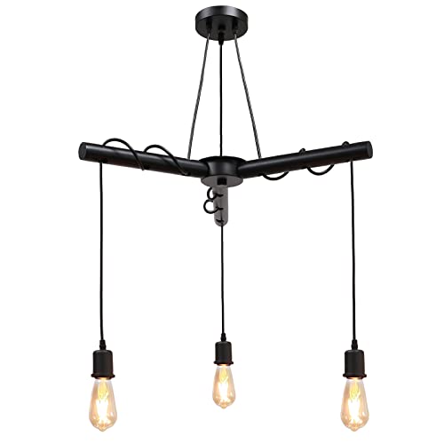 JINER Lámpara Colgante Retro, E27 Lamparas de Techo Ajustable, Lámpara de Araña de Madera para Comedor, Sala, Cuarto, Balcón
