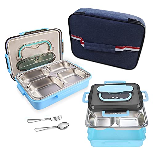 Jojobnj Fiambrera Bento para estudiantes, con compartimentos extraíbles de acero inoxidable y cuchara, a prueba de fugas, sin BPA, ideal para la escuela