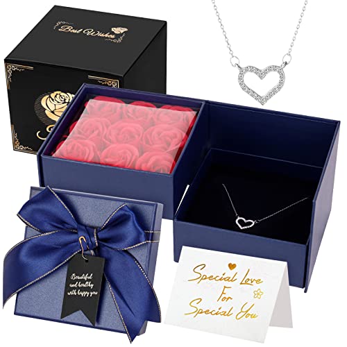 Joyhoop Rosa Eterna Rosa Sant Jordi Caja Regalo Giratoria, Rosa Caja de Joyería con Collar, Regalo Dia de la Madre Regalos Originales para Mujer, Regalos para Mama Aniversario Cumpleaños San Valentin.