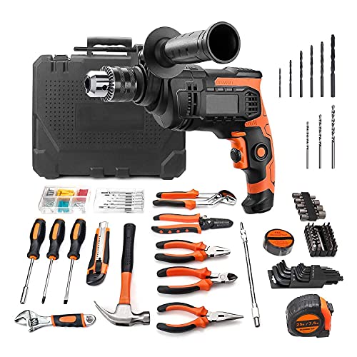 Juego de Herramientas Eléctricas, Caja de Herramientas & 800W Taladro Percutor con Accesorios de 145 Piezas para Reparaciones y Decoración del Hogar