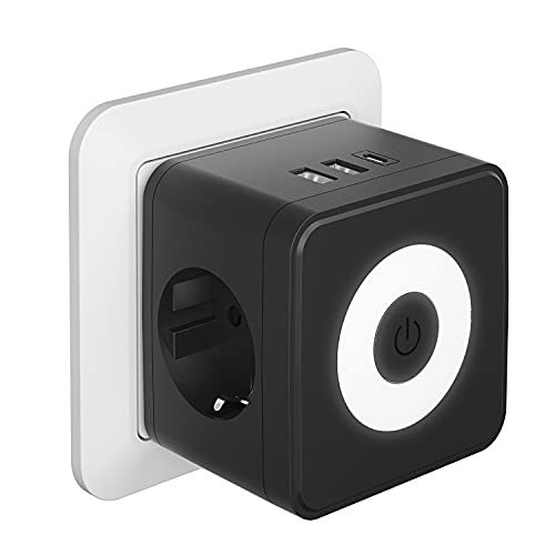 Kinglink Enchufe USB, 5 en 1 Cubo Ladron Enchufes con 3 puertos USB(3.4A max), (250V/10A) Enchufe USB Pared, Cubo Enchufe Multiple Pared con Luz indicadora, Enchufe USB Negro con Phone, Pad