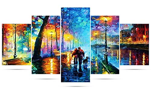 Kit de pintura con diamantes 5D cristales, TAOPE 5 Pack Kit de bordado de diamantes 5D para manualidades, diamantes estilo punto de cruz Decoración(pared/hogar) -Paseando después de la lluvia