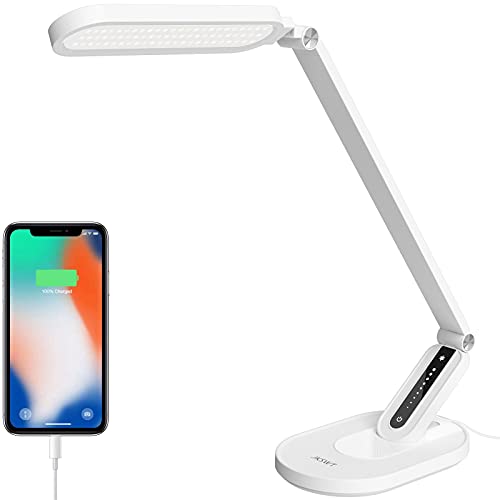 Lámpara de escritorio LED, JKSWT Lámparas de mesa para el cuidado de ojos protege los ojos Lámpara de oficina regulable con 5 modos de color Puerto de carga USB Control táctil y función de memoria