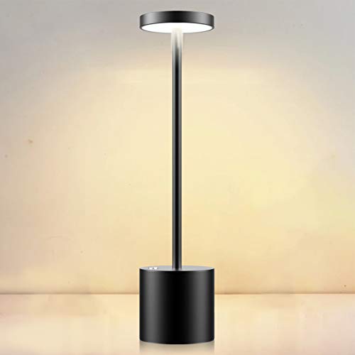Lámpara de mesa inalámbrica LED Dos modos de iluminación, Luz de lectura regulable Carga USB Fabricada en metal creativo Ideal para restaurante/terraza/dormitorio – Color negro