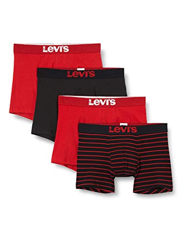 Levi’s Solid and Vintage Stripe-Calzoncillos Tipo bóxer para Hombre (4 Unidades), Rojo y Negro, S