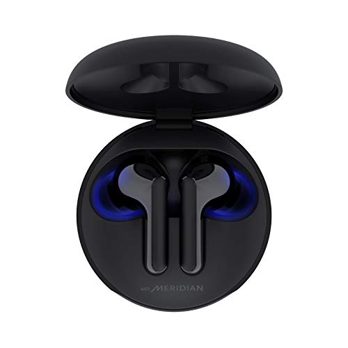 LG TONE Free FN6 Auriculares True Wireless con autolimpieza UVnano, con tecnología Meridian Sound, doble micrófono para llamadas en la oficina, base de carga inalámbrica y carga rápida en color negro