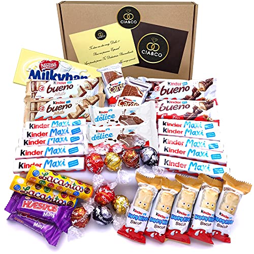 ✅🍫 【INCREIBLE SELECCIÓN DE PRIMERAS MARCAS】 Incluye más de 35 Bombones, Chocolates y Dulces Kinder y Lindor, entre otros. Un auténtico estallido de sabor ideal como regalo original para cualquier momento