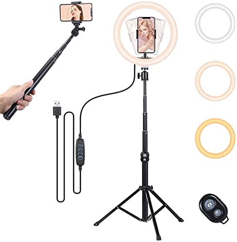 Luz de Anillo, Tomshine 10″ LED Regulables Aro de Luz con Trípode Soporte 1.5m para con Control Remoto BT, 3 Modos Luz 10 Brillo, para Transmisión en Vivo, Selfie, Maquillaje, Youtube