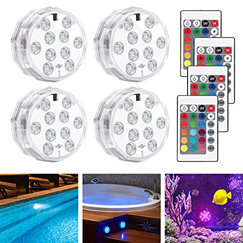 Luz Sumergible Piscina LED, LEDGLE Luz Piscina Impermeable, 16 RGB Multicolor con Mando a Distancia, Luz Subacuática para Estanque, Acuario, Fuente, Jardín, Fiesta, Base de Jarrón (4Pcs)